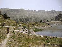 Rodeamos el lago y vemos un cartel, que nos dice que nos quedan 3horas de subida asi que nos ponemos en marcha sin entretenernos mas ya que segun la meteo a primera hora de la tarde cambia el tiempo.