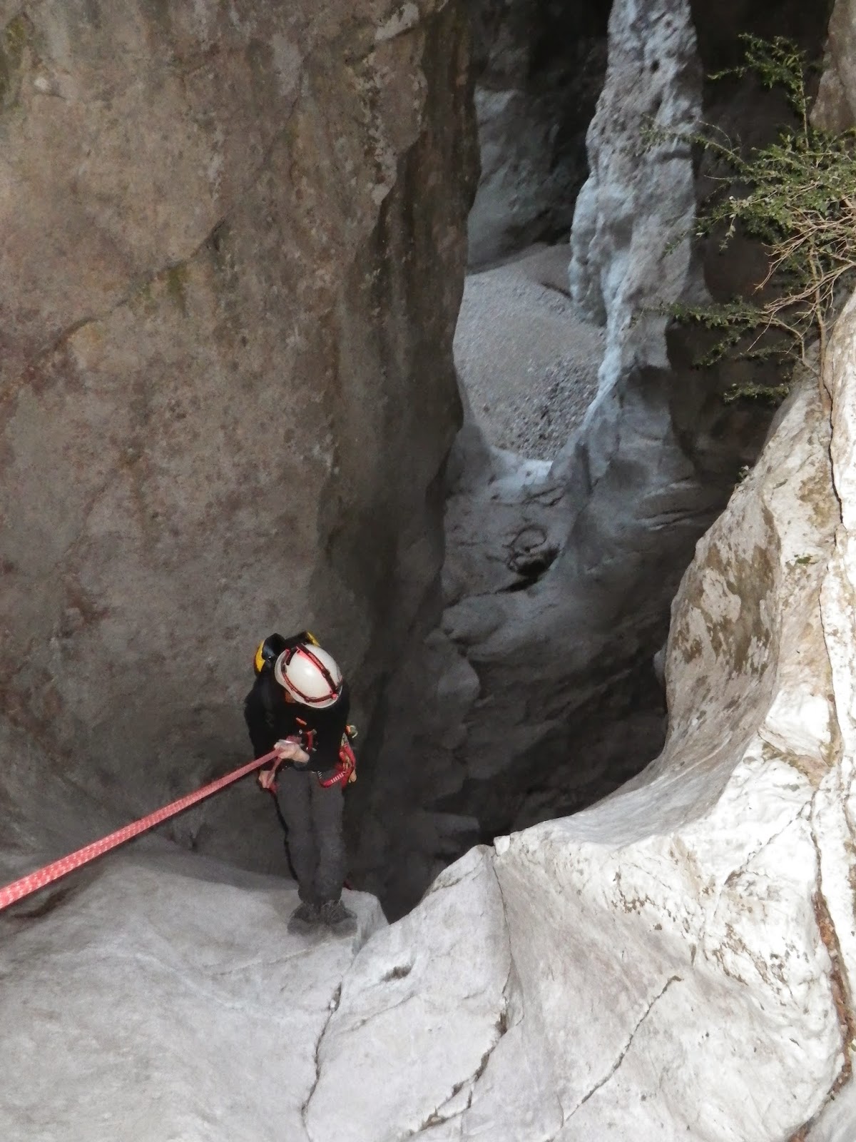 Proseguimos por el cauce y poco a poco, rápel tras rápel llegamos a la "mardita trampa"